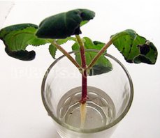 - ფოთოლი ჩადეთ წყალში 1-1.5 სმ სიღემეხე ფესვების წარმოქმნამდე.(წყლის შეცვლა საჭირო არაა,მხოლოდ დაამატეთ საჭიროების მიხედვით),შემდეგ გადარგეთ გრუნტში 2-2.5 სმ. სიღრმეზე.უკეთ დაფესვიანებისთვის დაასათბურეთ.