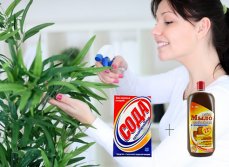 ნაცარი და საპონი - 10 ლ გამთბარ წყალში (30-40გრ) იხსნება 1კგ ნაცარი, აყენებენ, ხშირად ურევენ, 3-7 დღის მერე თხევად ნაწილს სუფთა სათლში ღვრიან, უმატებენ თხევად საპონს, ასხამენ პულვერიზატორში და ამუშავებენ მცენარეს ყოველდღე ან 3 დღეში ერთხელ. დარჩენილ ნაცრის მასას კიდევ უმატებენ 10ლ წყალს და ამ ხსნარით რწყავენ მცენარეებს.