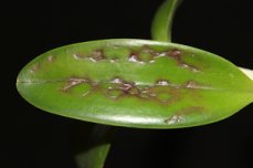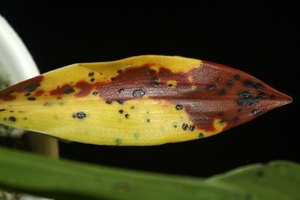 Bifrenaria,stanhopea: ამ დაავადების დროს ფოთლებზე ჩნდება საშუალო ზომის მშრალი ლაქები, რგოლისებრი, მრგვალი, ან უცნაური ფორმის - თეთრი,ყვითელი, ან ყავისფერი, - ყვითელ ფონზე ყავისფერი რგოლით ან შავი წერტილი ყვითელი არშიით,