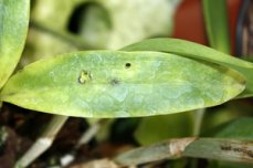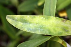 კატლეა: მას ხორციანი და უხეში ფოთოლი აქვს , მასზე ჩნდება თეთრი ან ყვითელი მთლიანი და არა რგოლისებრი ლაქები, ხშირად ოვალური, იშვიათად მრგვალი ფორმის, გარე პირობების და თავად გამომწვევის სახეობაზეა დამოკიდებული მისი გამოვლინების ფორმაც.