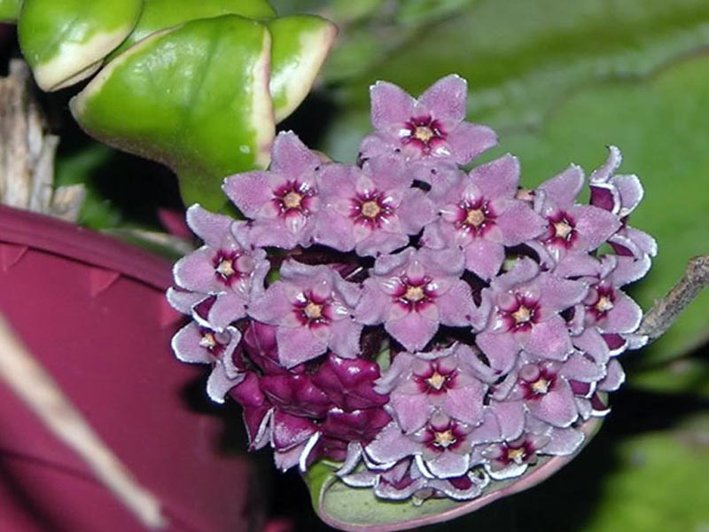 2. ულამაზესი ჰოია- იზრდება ბირმაში, საშუალო სიმაღლის ბუჩქია მცოცავი წვრილი ტოტებით, ხშირი, კვერცხისებრი 2,5სმ სიგრძის მკვრივი, წაწვეტებული ფოთლებით. ყვავილები საშუალო სიგრძის, შეკრული ქოლგა ყვავილედად, თეთრი, ცვილისებრი, დაყოფილი 5 წილად მეწამულ-წითელი გვირგვინით. უხვად ყვავის მთელი ზაფხული, თბილ ოთახებში იზრდება ამპელურად. ძალიან დეკორატიული მცენარეა.