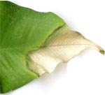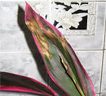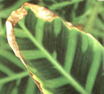 ფოთლის წვეროები ყვითლდება კალციუმის სიჭარბის ან არასაკმარისი მორწყვის შედეგად.
