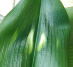 - კიდევ ერთი გავრცელებული პრობლემაა მზით დამწვრობა. ყველა მცენარე ვერ იტანს მზის პირდაპირ სხივებს და დიდხანს მის ქვეშ ყოფნისას ფოთლები ეწვებათ, თუ ასე მოხდა, მოაცალეთ დაზიანებული ფოთლები და მოუჩრდილეთ ხოლმე შუადღეზე.