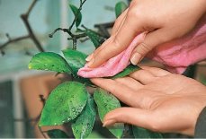 (ჩამოწმინდეთ ფოთლები რბილი ჩვრით)![]()