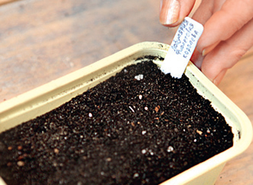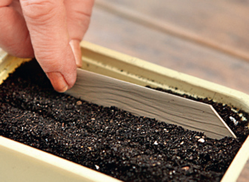 6. ყუთში დებენ მარკერს, რომელზეც დათესვის თარიღი და მცენარის სახელი აწერია