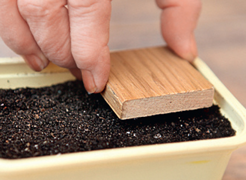 3. დასათეს ყუთს ავსებენ ზომიერად ნოყიერი ფხვიერი ნეიტრალური მჟავეობის მიწით, ზემოდან მიწას ასხურებენ ფუნგიციდს, რადგან ლობულარიის ნათესი ადვილად ავადდება „შავი ფეხით“. მერე მიწას ტკეპნიან პატარა ფიცრის ნაჭრით
