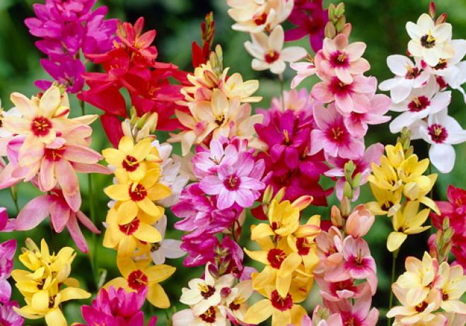 სპარაქსისი: მის ბოლქვებს რგავენ მაისში მზიან ადგილზე 5-7 სმ სიღრმეზე. თუ განათება არაა საკმარისი, შეიძლება მცენარემ არ იყვავილოს. თუ პირობები მოეწონა, იგი იყვავილებს აგვისტოში. ბოლქვებს მიწიდან სექტემბრის ბოლოდან იღებენ.