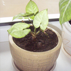 მოვლა. სინგონიუმი შეიძლება გაზარდოთ როგორც ამპელური მცენარე,დაკიდეთ ქოთანი მაღლა და მცენარის ტოტები ხალიჩასავით გადმოეფინება ქოთნიდან.მოსახერხებელია საყრდენად ხავსშემოხვეული ჯოხის გამოყენება,მცენარე თვითონ შემოეხვევა საყრდენს და ზემოთ გაიზრდება,ტოტების სიგრძე 1,5-18 მეტრს აღწევს.მცენარე კარგად იზრდება ჰიდროპონიკის გამოყენებით.საერთო ჯამში სინგონიუმი სწრაფად ვითარდება და საკმაოდ არაპრეტენზიულია სახლის პირობებში.