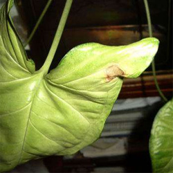 თუ სინგონიუმს გაუჩნდა ყავისფერი ლაქები ფოთლის ფირფიტის ნაპირებზე ან ცენტრში - დაარეგულირეთ მორწყვის რეჟიმი.შესაძლოა მორწყვა ზედმეტი მოგივიდათ.