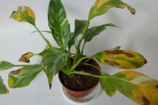 - მზით დამწვრობა: მას ნახევრადჩრდილი მოსწონს, მზის პირდაპირი სხივების გარეშე. თუ ქოთანს მზიან ფანჯრის რაფაზე დადებთ, ფოთლები მაძღარ მწვანე ფერს დაკარგავს, გაფერმკრთალდება, გაყვითლდება, მერე კი თეთრ ფერს მიიღებს. თუ მზე მწველიცაა, დამწვრობა გარდაუვალია - სიყვითლე ზოლებად ან ლაქებად ვრცელდება ფოთლებზე, გაყვითლებული ადგილები თხლია, პერგამენტისებური.