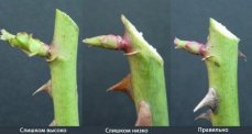 გასხვლის ზოგადი წესები - ვარდის სწორად გასხვლა წლის ნებისმიერ დროს აუცილებელია. ირიბი გადაჭრა სჭირდება ტოტს კვირტიდან 5 მმ ზემოთ. ![]()