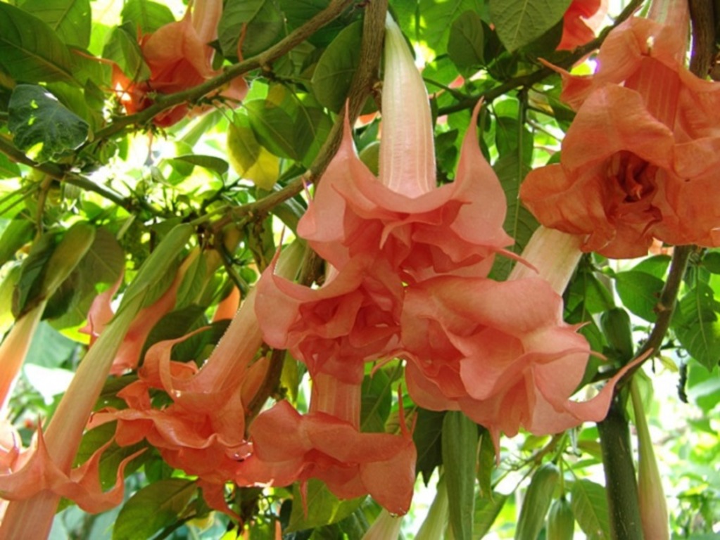 ჭრელი ბრუგმანსია (Brugmansia versicolor) - ამ სახეობას აქვს ყველაზე ფრძელი ყვავილები 0,5 მ. ყვავილი კრემისფერია, თუმცა არშიისკენ უფრო ატმისფერში გადადის.ჩვენი გუნდი facebook_ზე ყვავილები და მათი მოვლის მეთოდები შემოგვიერთდით.